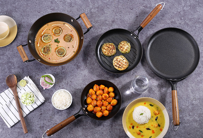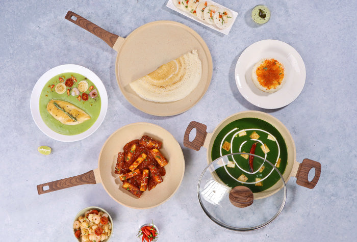 Elegant collection that is built to withstand dry heat without losing shape and ensures healthy cooking with low oil.