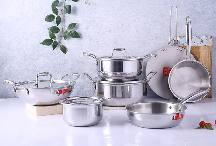 Durable and robust tri-ply pans offer incredible value. Their resistance to losing shape and discoloration makes them perfect for everyday use.